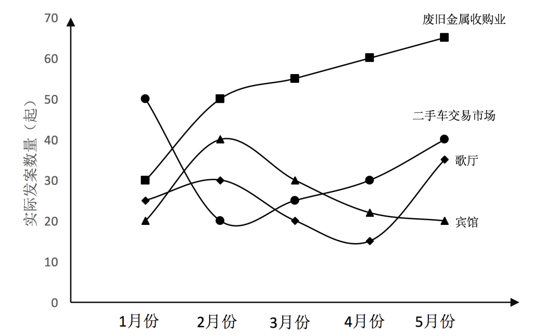 51、下图是2016年前五个月某派出所辖区行业场所发案数量统计图。从图中所反映的情况看,派出所下一步应优先收集下了那个行业场所信息( )。