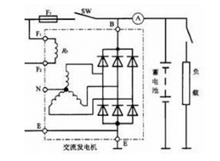 313.交流发电机搭铁形式电路如下图所示,图中描述的是交流发电机的哪一种搭铁形式()