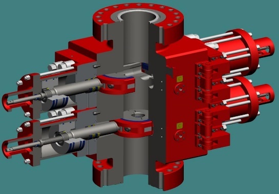 36. 此图是一个双闸板防喷器,下列选项中正确的叙述是( )。