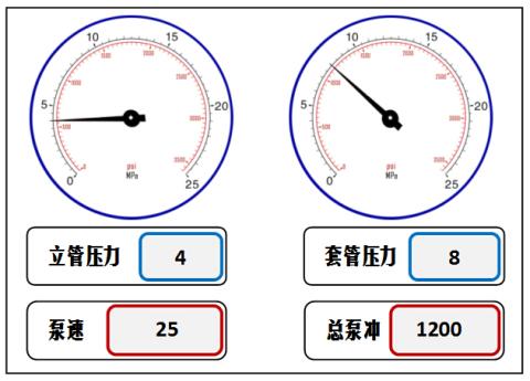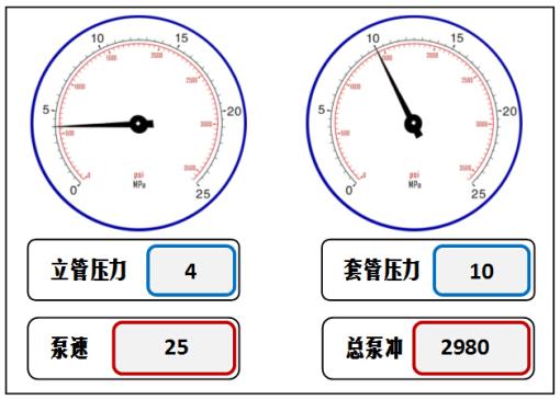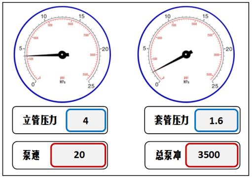 154. 已知测得的压井泵速25冲/分钟时的循环立压为3MPa,钻进时发生溢流关井后求取的立压为1MPa,套压为2MPa,环空总容积为3500冲,进行司钻法压井第一循环周操作,现在状态如图所示,此时( )。