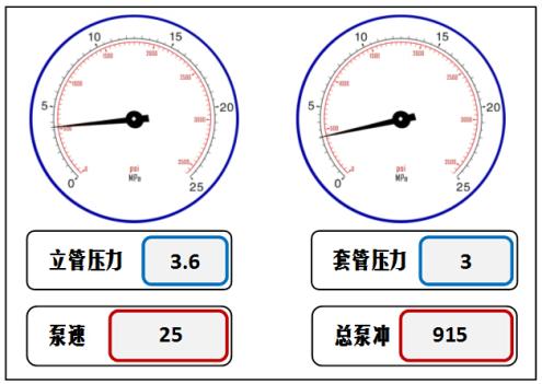 154. 已知测得的压井泵速25冲/分钟时的循环立压为3MPa,钻进时发生溢流关井后求取的立压为1MPa,套压为2MPa,环空总容积为3500冲,进行司钻法压井第一循环周操作,现在状态如图所示,此时( )。