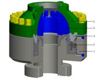 9. 球形胶芯的环形防喷器结构主要由( )胶芯等组成。