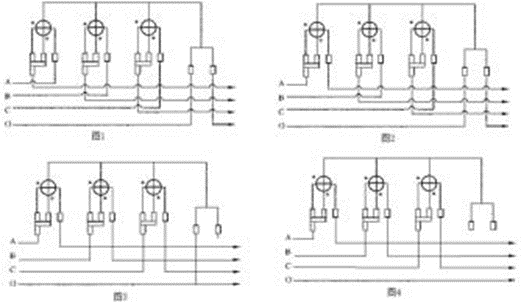 1.1.201. 指出所示的三相四线有功电能表直接接入式接线图中的接线正确的图号。()