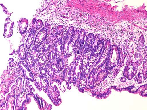 170.胃窦部黏膜组织活检,镜下如图所示,胃黏膜发生的有关病变的描述,错误的是