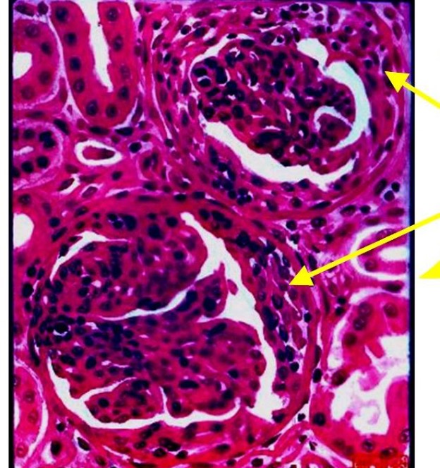 160.出现箭头所指图1、2改变的可能的肾炎是