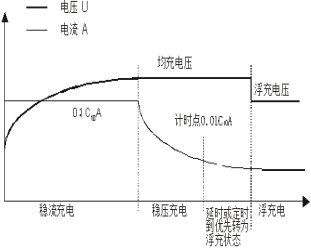 下图为蓄电池充电曲线图,电池容量为300Ah,浮充电压为234V,均充电压为244V,请回答以下问题:(1)蓄电池在什么情况下需要进行均充。(2)结合下述曲线图简述蓄电池充电各阶段的电流、电压变化过程,并说明数值变化情况。