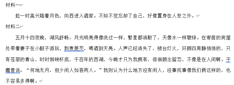 根据《记承天寺夜游》及下面两则材料,在后面语段中的横线上填写恰当的内容。