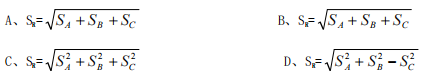 288.以测定量 A、B、C 相加减得出分析结果 R=A+B- C,则分析结果的方差 SR 是( )。