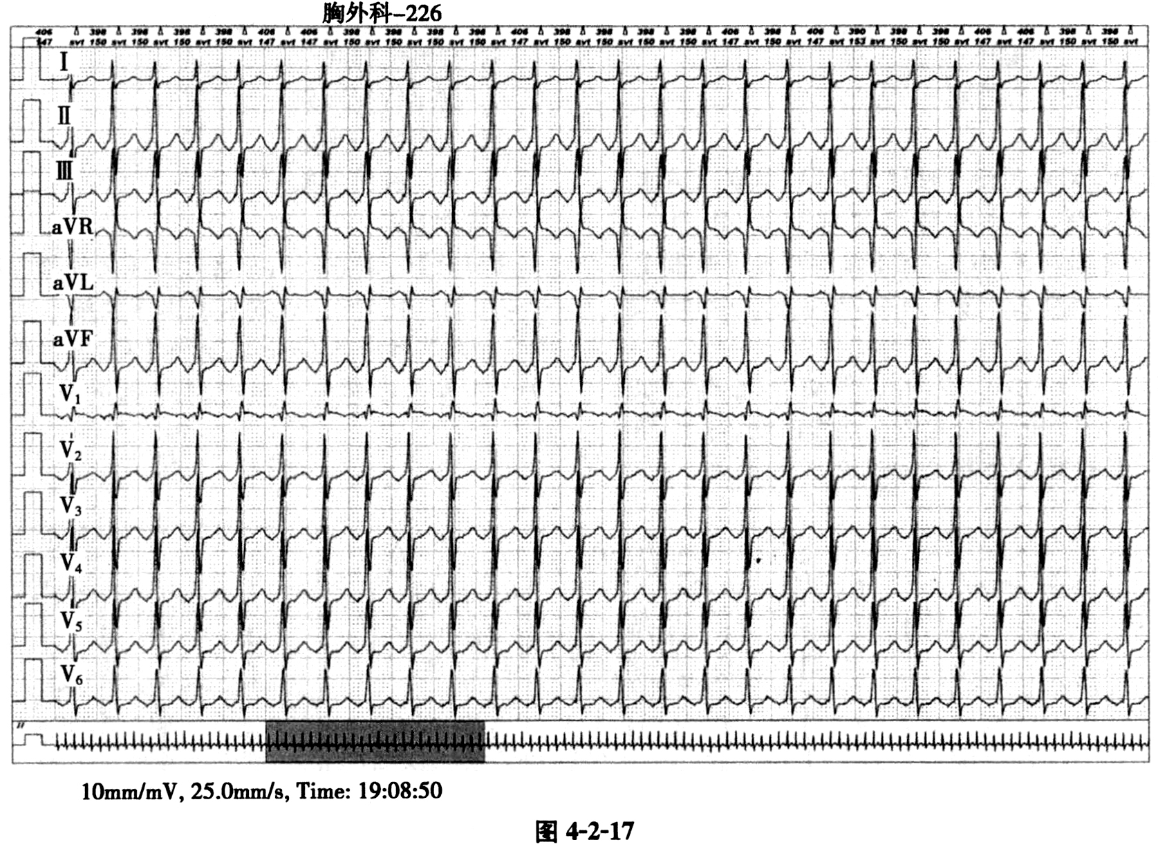 252.患者男性,15岁,先天性心脏病手术后2天出现心动过速,动态心电图如图4-2-17所示,应诊断为