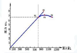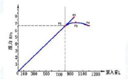 7. 如图示,进行地层破裂压力试验的曲线图,( )点的压力值为地层漏失压力。