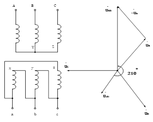 [T]B-A-C-008 4 2 5 下面的电压相量图的联接组别是( )。