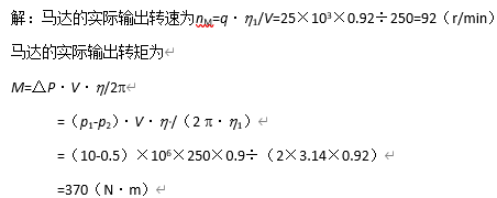答:该液压马达的实际输出转速和转矩分别为92r/min和370N·m。