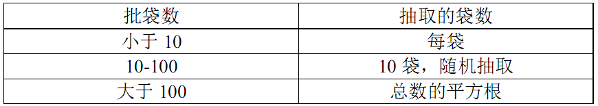 例:批袋数为200 袋,从样品批中随机抽取( )个样品。1.3.2 如果从装卸中的批取样,可以每隔14 袋取一个样品。
