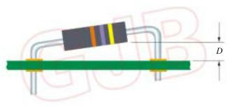 3、下图为不合格的安装形式:引脚一端翘起 D≥3mm,见下图。( )