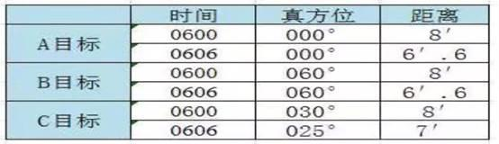 260、本船雾中航行,航向000。,肮速14节,雷达测得回波数据如图所示,通过雷达标绘,判断哪些目标存在碰撞危险?