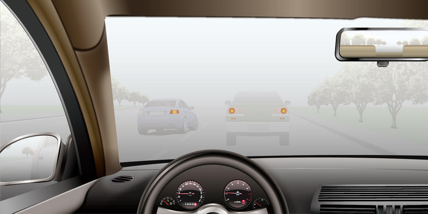 693.如图所示,在这样的雾天跟车行驶,以下说法不正确的是?