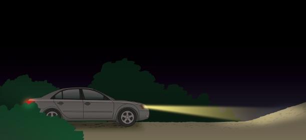 692.如图所示,夜间驾驶机动车时,如果发现灯光照射距离由远变近,则说明前方道路可能出现什么情况?