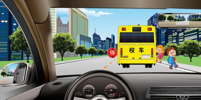 589.如图所示,驾驶机动车遇到校车停车上下学生时,以下做法正确的是什么?