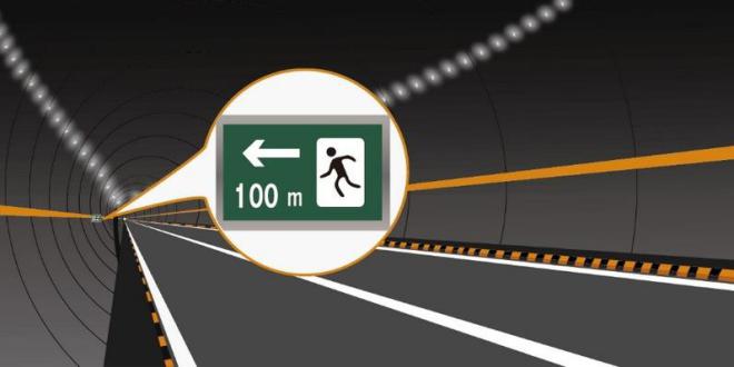 419.如图所示,遇隧道内发生火灾等紧急情况需疏散逃生时,驾乘人员应按照下图标识指示的方向逃生。