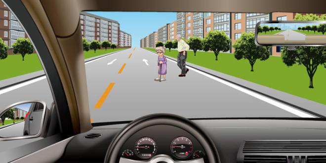394.如图所示,驾驶机动车在这种情况下怎样礼让行人?(1分)