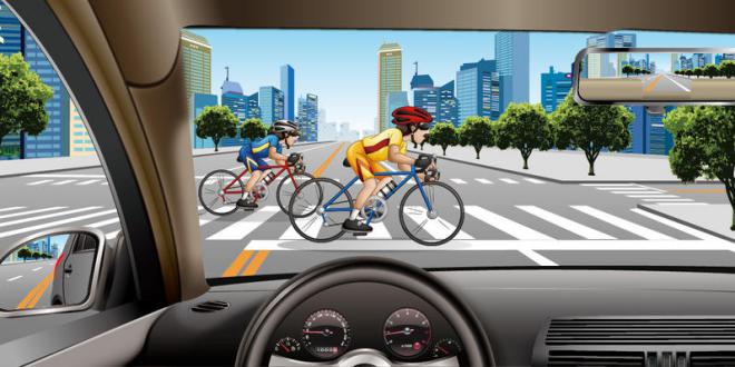 390.如图所示,驾驶机动车在学校门口遇到这种情况怎样行驶?