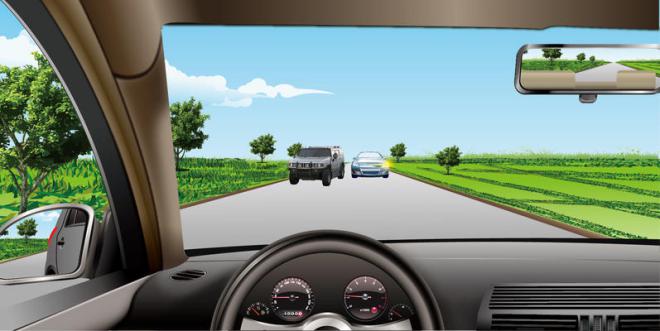 393.如图所示,当你看到对面有车辆超车时,应该如何应对?