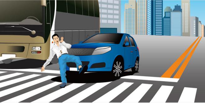 367.如图所示,造成这起事故的主要原因是机动车未按规定避让行人。