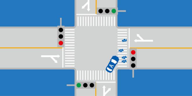 259.如图所示,驾驶机动车在交叉路口遇到这种情况正确的做法是什么?