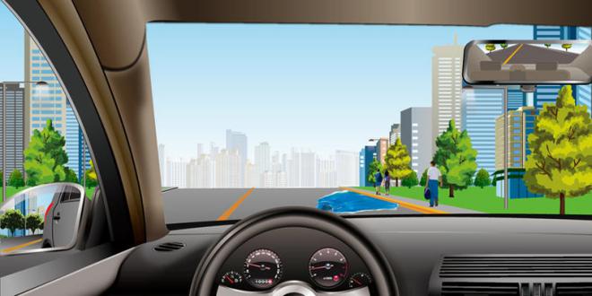 255.如图所示,驾驶机动车遇到右侧车道车辆突然变更车道时,应当如何避让?