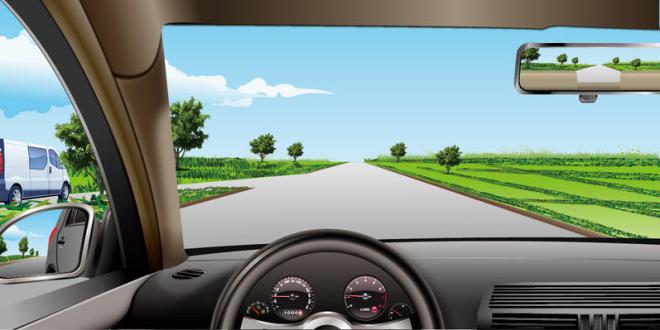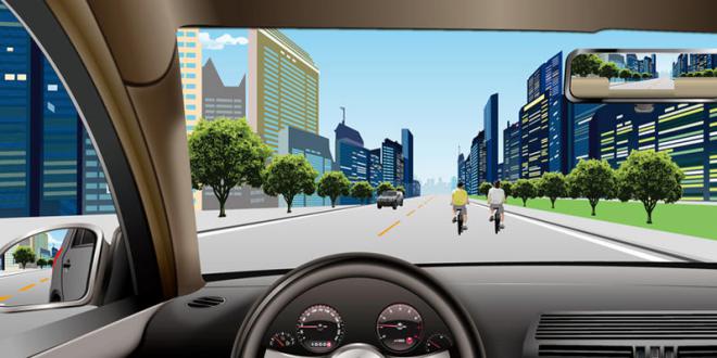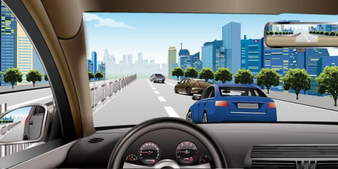 255.如图所示,驾驶机动车遇到右侧车道车辆突然变更车道时,应当如何避让?