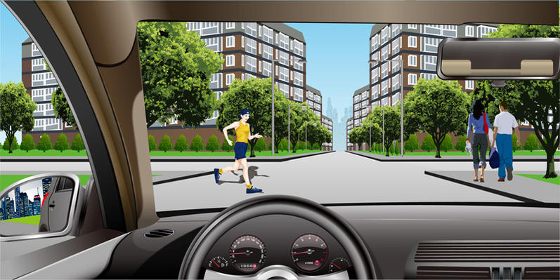 251.如图所示,在这种路口遇到行人突然横穿怎么办?