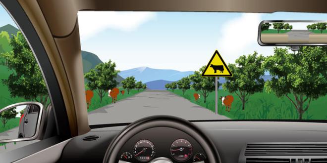 254.如图所示,驾驶机动车在这种情况下正确的做法是什么?