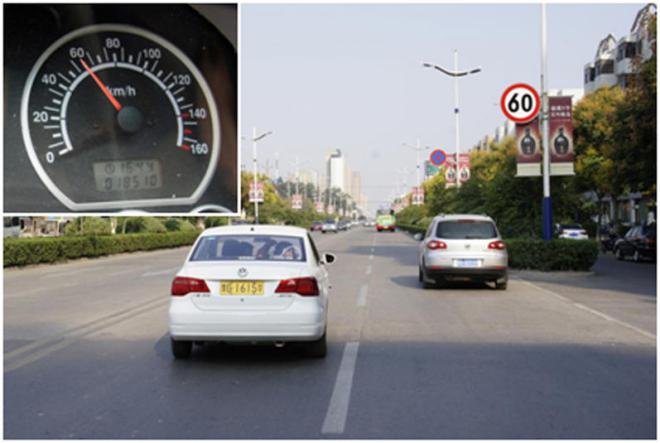 198.图中左侧白色轿车,在这种情况下为了保证安全,应适当降低车速。