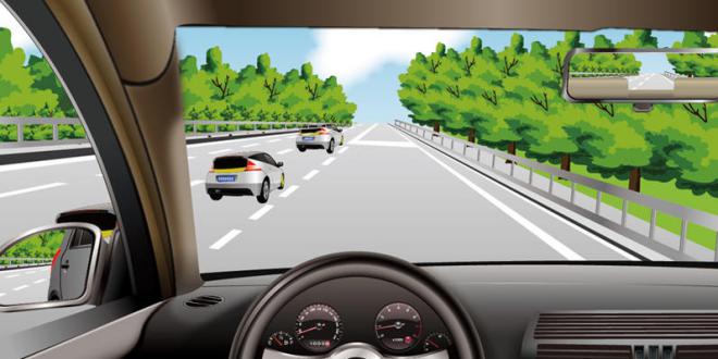 178.如图所示,驾驶机动车遇到这种情况怎样进入行车道?