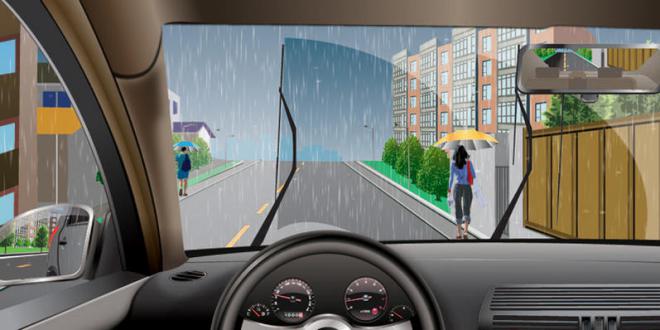 180.如图所示,驾驶机动车在暴雨天气条件下行驶,当刮水器无法刮净雨水影响行车安全时,以下做法正确的是什么?