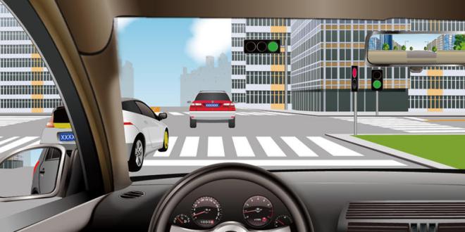 83.如图所示,驾驶机动车在拥堵的路口遇到这种情况怎样处置?