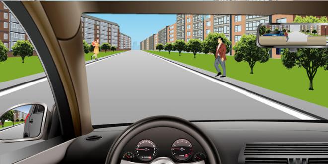 74.当驾驶车辆行经两侧有行人且有积水的路面时,应怎样做?(1分)