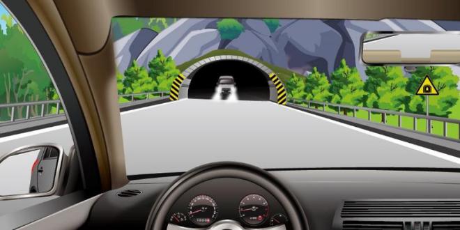 67.驾驶机动车在长隧道路段行驶时,应在什么时候开启前照灯?(1分)