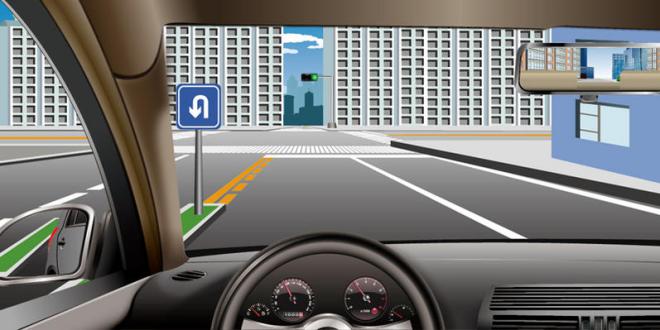 69.如图所示,驾驶机动车在前方路口怎样掉头?