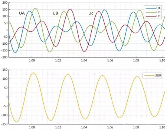 1.观察下图35kV母线电压和零序3U0录波,请判断电网发生了( )异常情况。