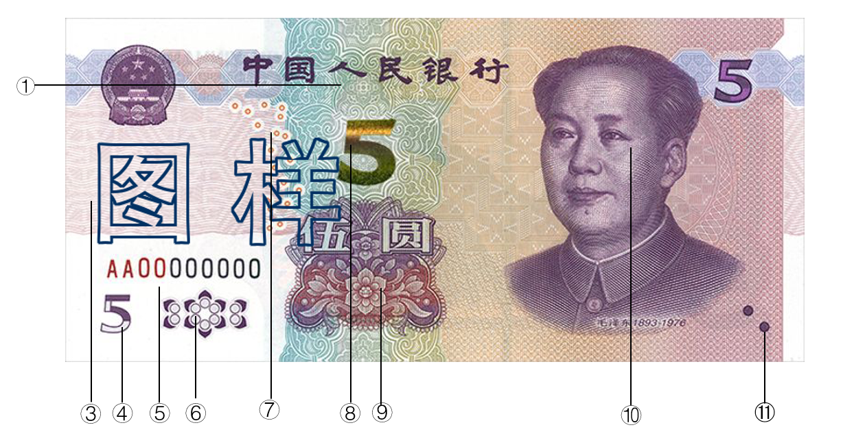 210、1元,下列选项中对图片上标①防伪特征名称描述正确的是()。