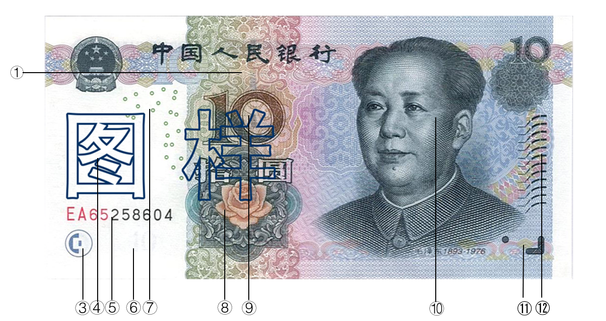 209、10元,下列选项中对图片上标⑫防伪特征名称描述正确的是()。