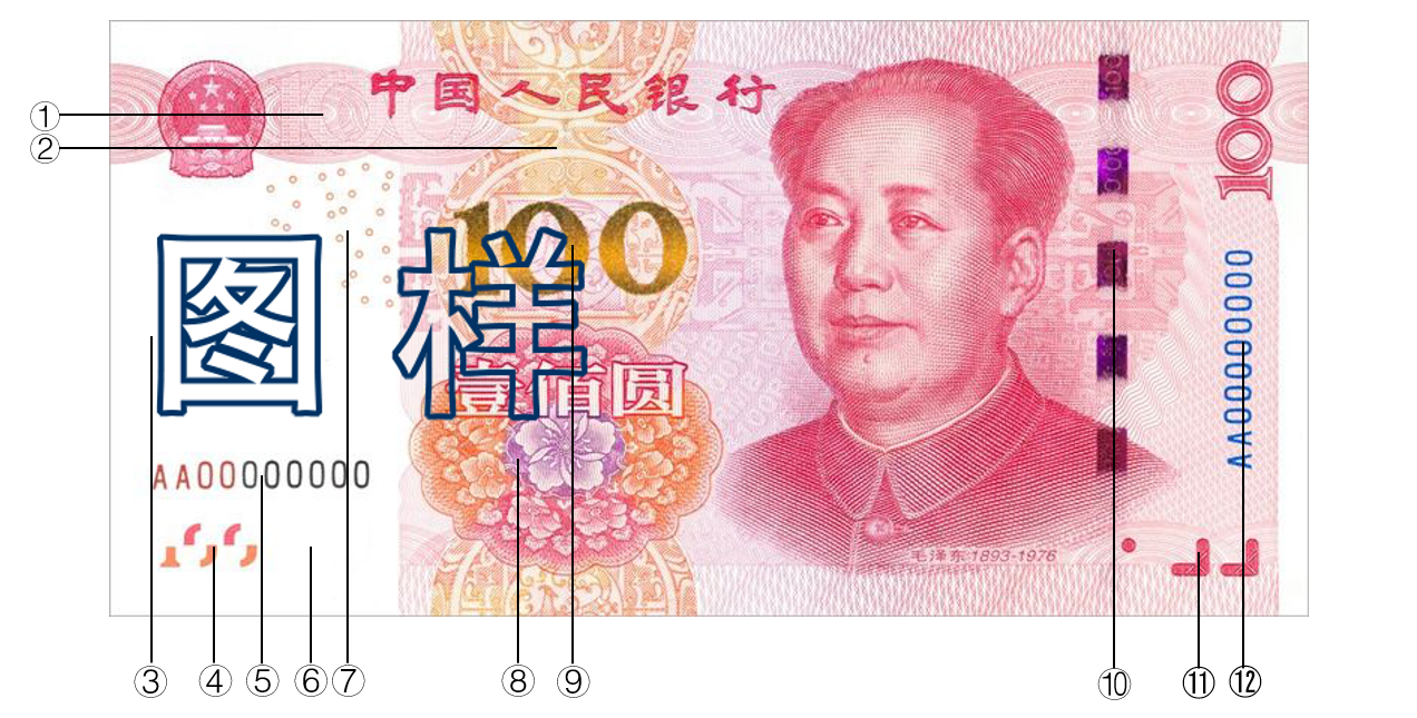 210、1元,下列选项中对图片上标①防伪特征名称描述正确的是()。