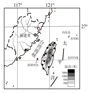 21. 台湾省位于我国东南海域,是祖国不可分割的一部分,在国家政策的支持下,两岸融合发展不断深化、经贸合作势不可挡。图为台湾省示意图,完成下面小题。