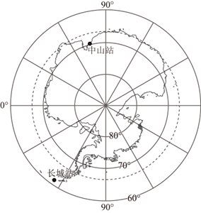 23. 海冰是全球气候系统重要的组成部分,根据中山站的监测数据,南极地区海冰存在显著的季节变化。图为“南极地区示意图”,完成下面小题。