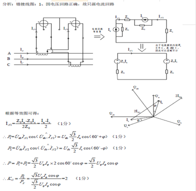 正确答案:答:分析并计算该错接线情况下的更正系数见右图