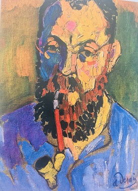 21 . 绘画的色调从纯度上可以分为浓艳的高纯度调子、柔和的中间纯度色组合的调子和朴素的接近黑白灰的低纯度调子,以及强调鲜灰对比的调子。如图所示马蒂斯的这张自画像是属于