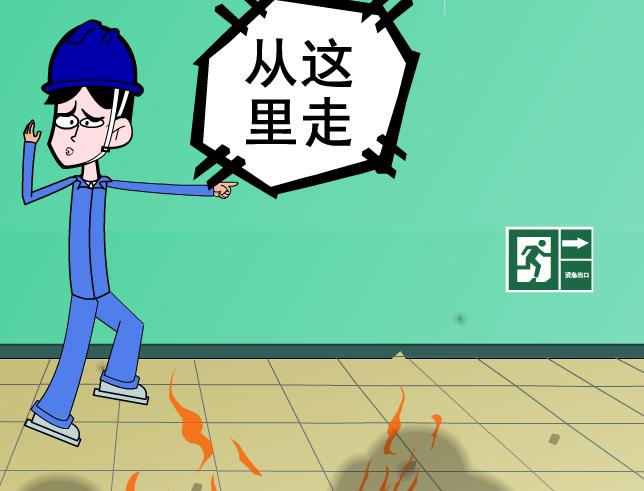 41(单选题)如图,火灾逃生要向( )方向逃生。