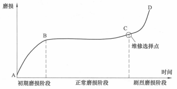 17、绘制设备运行磨损曲线图,标注各个阶段,及维修选择点。