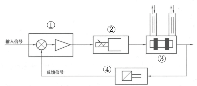 ①放大器( )②电磁铁( )( )③阀芯( )④位移传感器( )( )